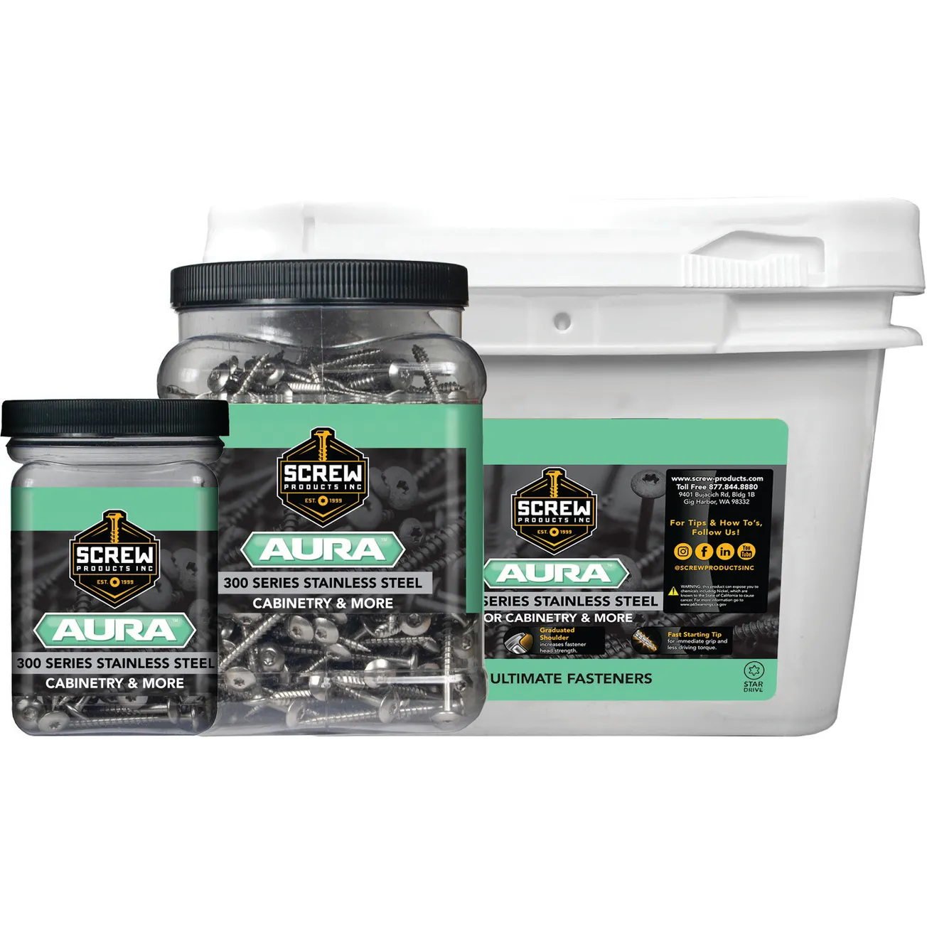 Conveniently packaged in 1-lb. and 5-lb. jars, and bulk pails, the fasteners come packaged with a Star Drive bit. Available are Axis structural Wood screws, Epic trim screws, Pico finish screws, and Aura cabinetry & more screws.