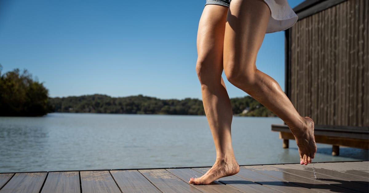 Hot summer afternoons can make conventional decking uncomfortable to walk on, especially for bare feet. Voyage deck boards are engineered with an infrared-reflective cap and a micro-embossed texture, reducing heat absorption so surfaces stay noticeably cooler underfoot. This heat resistance* helps extend the enjoyment of outdoor living throughout the hottest months.