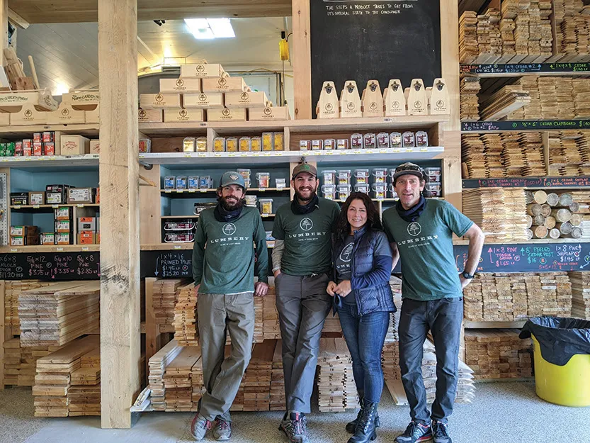 The four partners quickly fine-tuned the original epiphany (“Sell wood!”) with another—and more ground-breaking—one: Sell Maine lumber. “We’re living in a state that’s 90% trees, but the little mills here get bypassed by the giant distributors. There’s no connect between the sawmill and the consumer: Zero!” So, modeling their practices on those of the revered Patagonia clothing firm, they decided to make their credo the chain of custody.