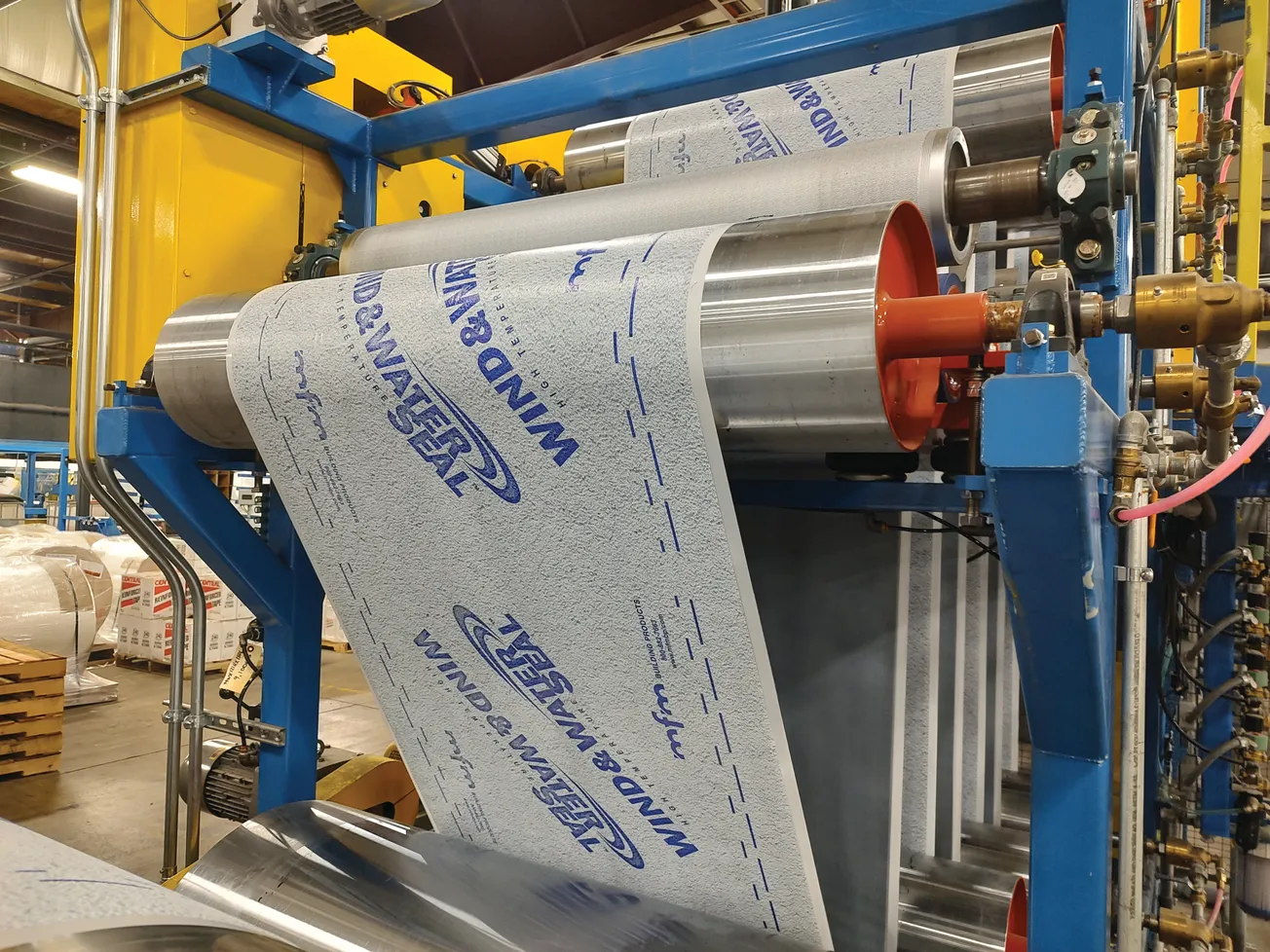 MFM Building Products’ new 48” Wind & Water Seal self-adhering roofing underlayment is composed of an embedded traction surface adhered to a high-temperature adhesive rated to 250°F for use under metal roofing systems.