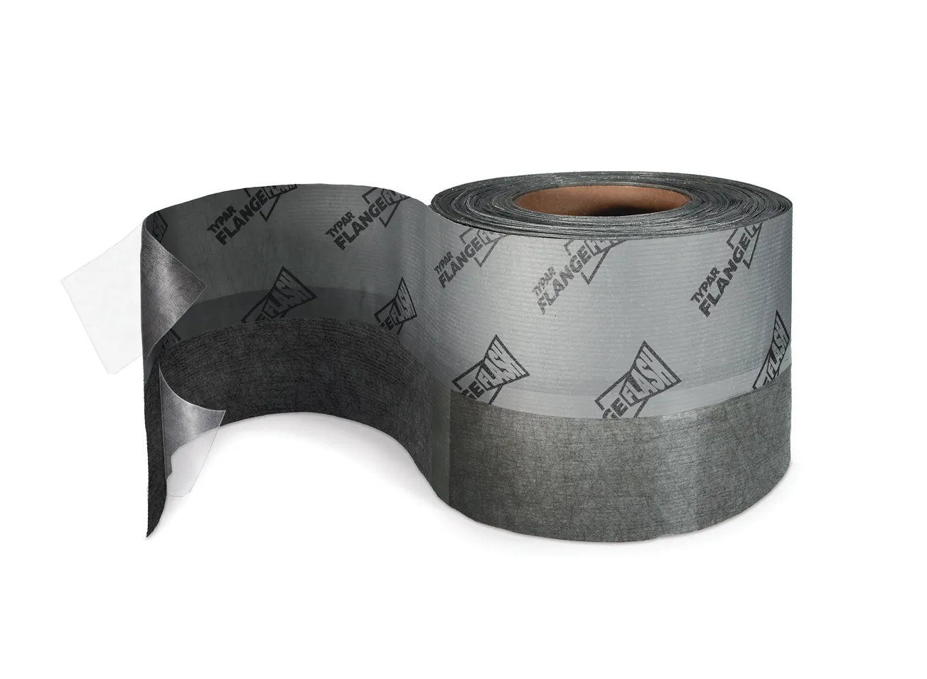 FlangeFlash is designed for flashing non-flanged doors and windows, forming a permanent mechanical bond between the window or door frame and the exterior wall. It simplifies this critical detail and provides a verifiable air and water barrier. The tape combines the strength of TYPAR Commercial building wrap with a high-performance all-temperature adhesive.
