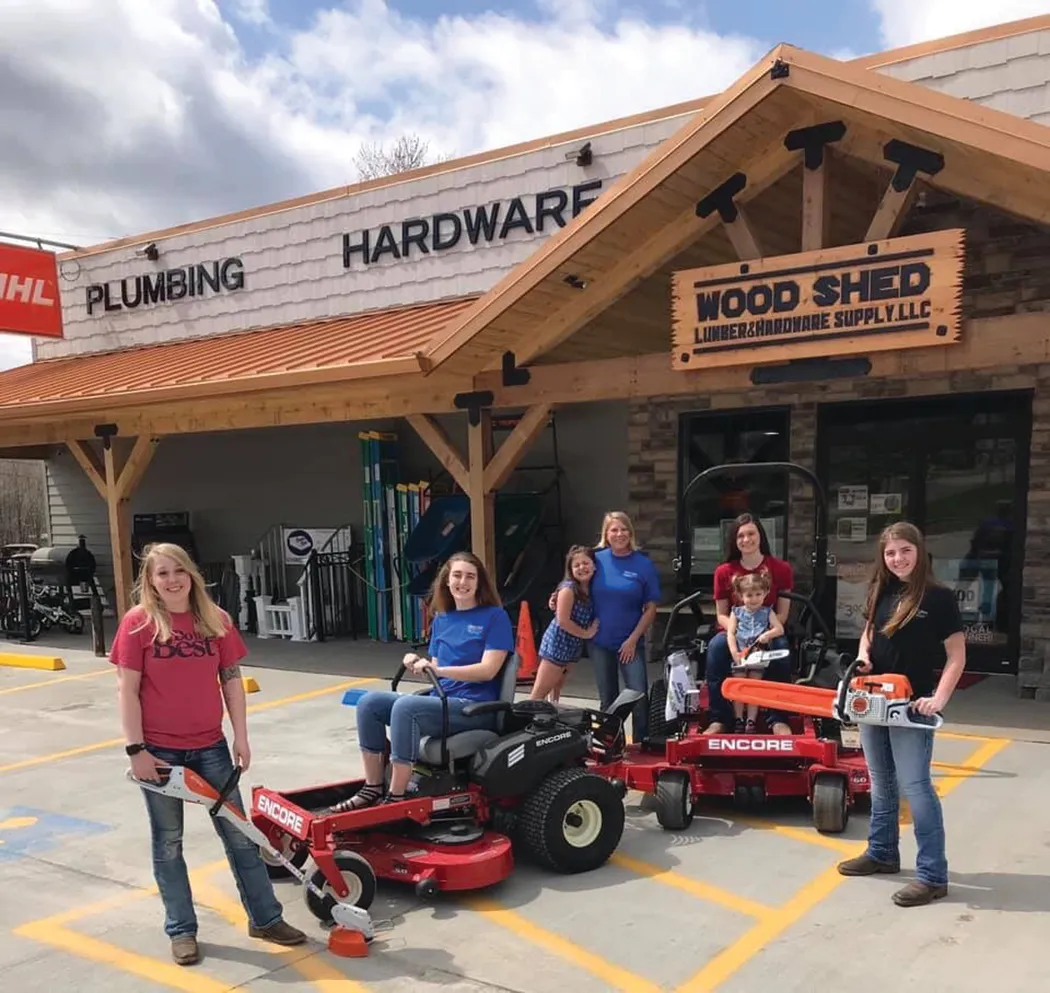 Wood Shed’s contractors have grown loyal. And today the walk-in trade is growing, too, thanks to more attention to the town’s needs. She’s added housewares and lawn & garden to the mix, as well as rentals, a popular niche. She expanded the paint department and initiated a drive-thru yard. Today Wood Shed has become the town’s prime place to shop (“a drastic change”).