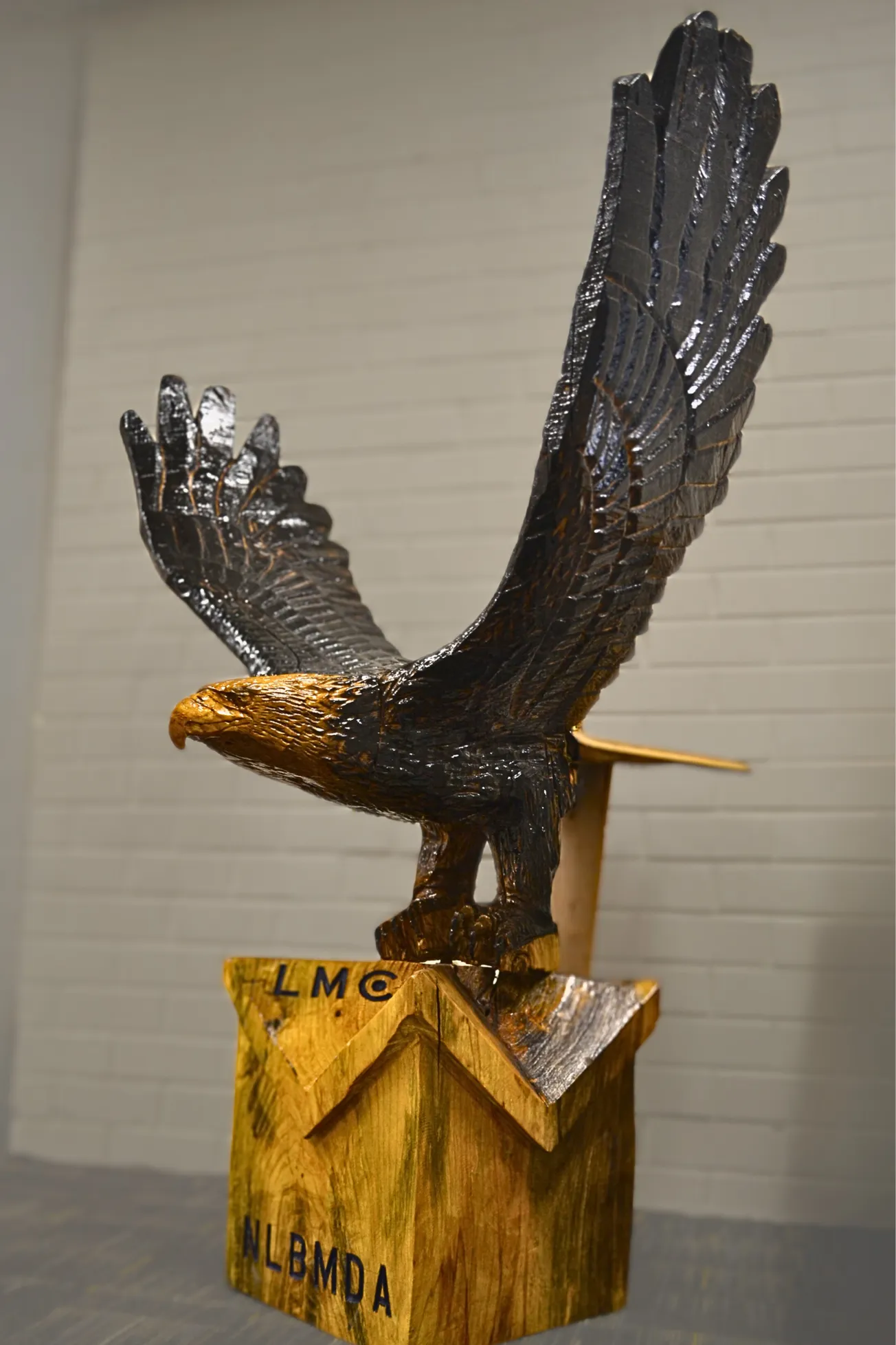 LMC acquired the eagle through a silent auction at the 2023 Pro Dealer Industry Summit in October 2023. Brett Hanson of Tristate Building Center donated the eagle to the auction. Proceeds from the auction supported the National Lumber and Building Material Dealer Associations Political Action Committee (LUDPAC), which lobbies for lumber and building material dealers and promotes the industry’s agenda on Capitol Hill.