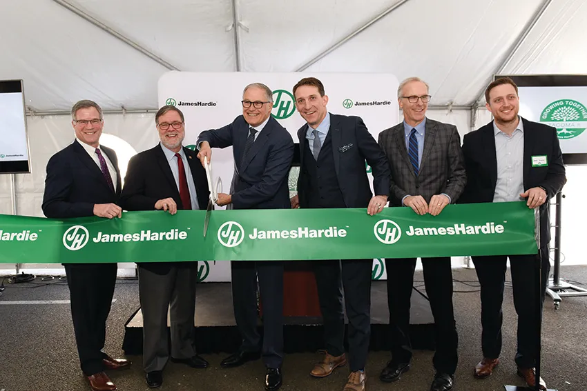 Fiber cement siding and trim producer James Hardie Industries, together with Governor Jay Inslee, U.S. Representative Denny Heck, and Pierce County officials, recently celebrated the company’s expanded manufacturing operation near Tacoma, Wa.