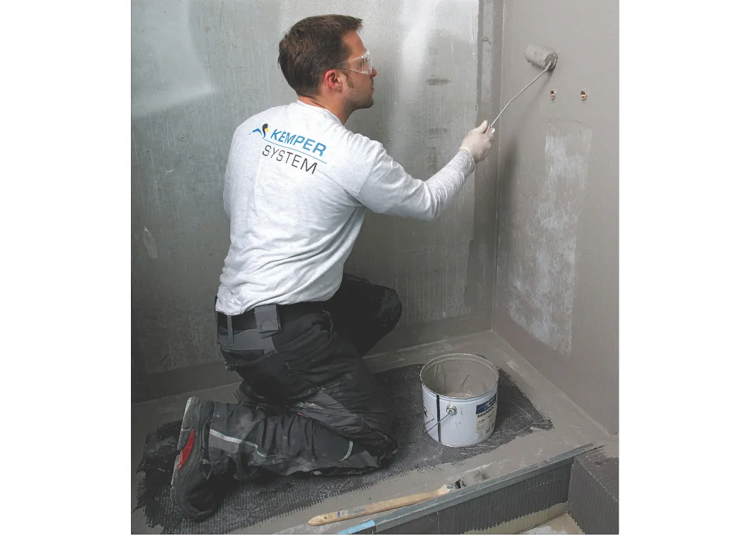 Kemper System’s Kemperol is a solvent-free, fully-reinforced membrane system for sealing kitchens, bathrooms, locker rooms, laundry, and utility areas before installing tile or stone.