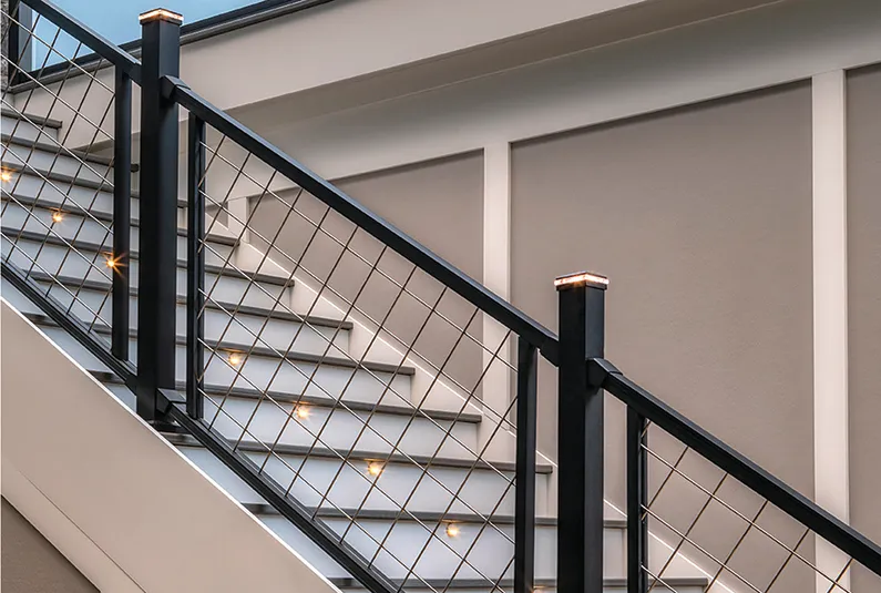 The new infill options feature one-piece rail designs that can accommodate either 304 stainless steel Trex mesh panels or 1/4” tempered glass panes. Sections can be installed with a continuously graspable rail. They come in Charcoal Black, Bronze or Classic White, with a durable powder coating for to improve color retention and corrosion resistance.