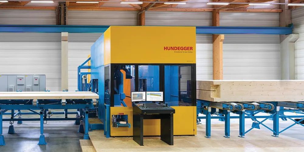 Steve Shrader, Business Development/Operations, Hundegger USA, notes that the Hundegger ROBOT-Max has been developed for the North American market, where mass timber can use larger cross sections than those that are standard in the EU. “The ROBOT-Max can process beams and columns as large as 24” x 48” and up to 40’ long. In the mass timber market, it is the only such saw.”