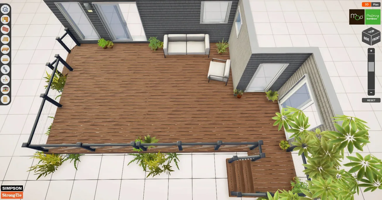 The free-to-use online software allows contractors, deck builders, and homeowners to create their own custom deck rendering using MOSO Bamboo X-treme decking material, along with structural products and technical knowledge from Simpson Strong-Tie. The planner provides all the information they need to build a safe, durable and sustainable deck.