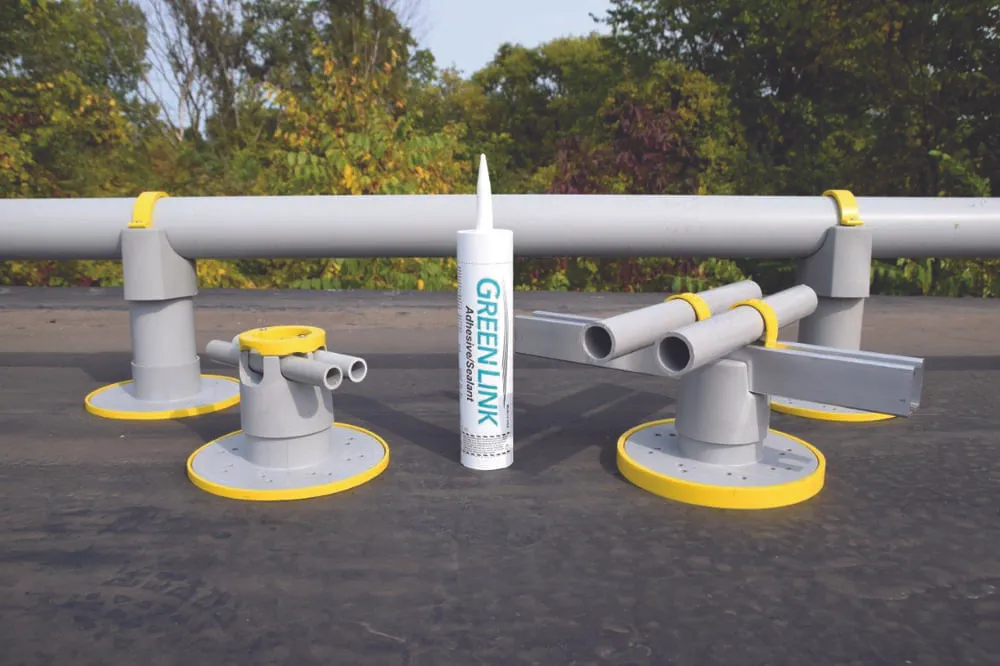 Green Link’s newest family of custom-engineered, molded straps and caps are designed for securing pipes and struts for its KnuckleHead rooftop support product line.
