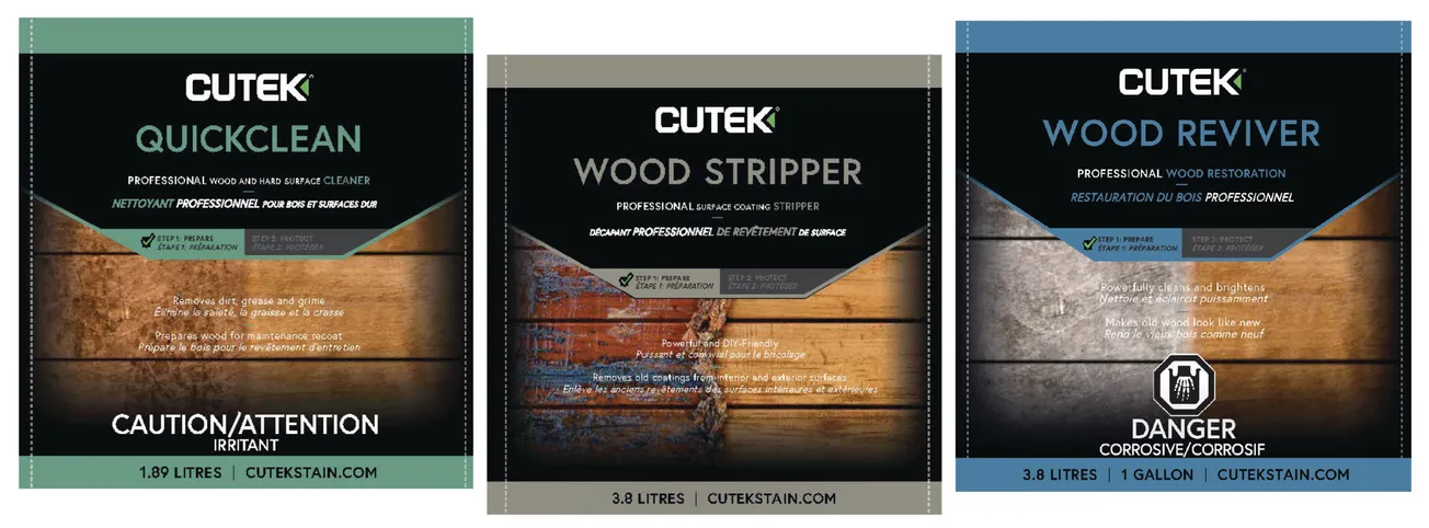 CUTEK wood care products now feature a cleaner, more cohesive look across all products, providing a more apparent connection between the products, with each one indicating whether it is Step 1: Prepare or Step 2: Protect.